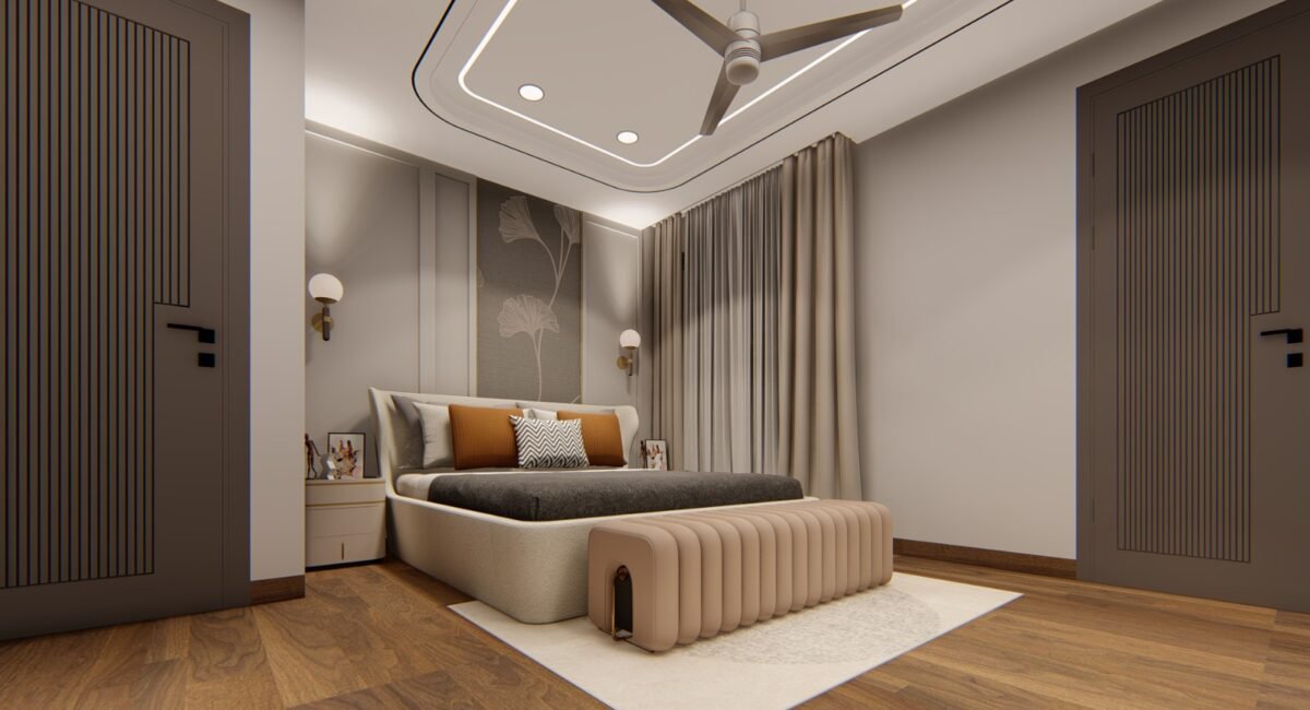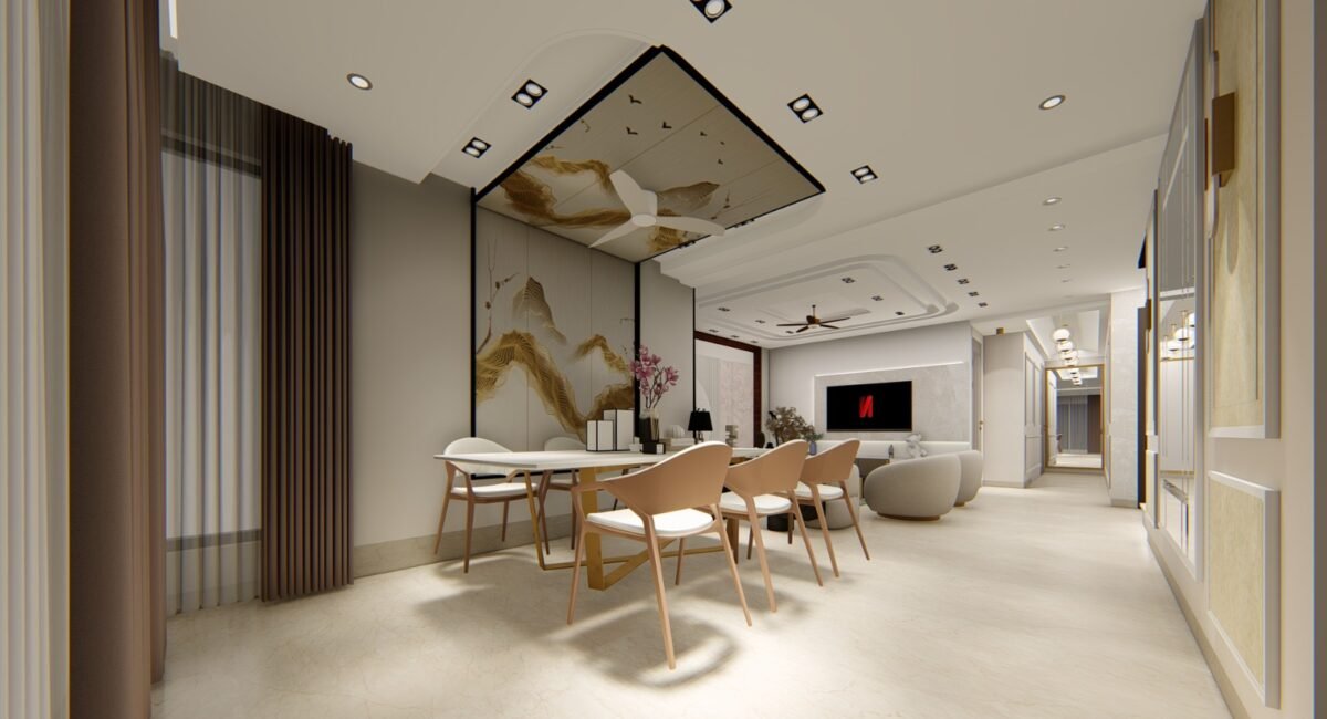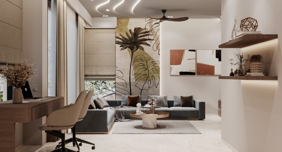 Spanning two floors of 1,900 sq. ft. each, it converges minimalism, modern, and clever spatial configurations in this duplex designed for both familial joy and functionality. Every space tells its own story through texture and colors while connecting seamlessly with the rest of the house. Featuring two master bedrooms, two guest rooms, a recreational space for meditation and yoga, a small lounge with study, and an open breathable kitchen along with an open living-dining area. Each space was carefully planned around daily routines, habits, and moments of pause, allowing colour, pattern, and material to emerge as natural extensions of function, all wrapped in a palette of inviting warm tones.