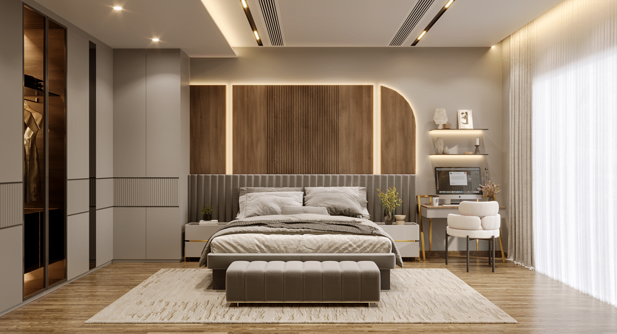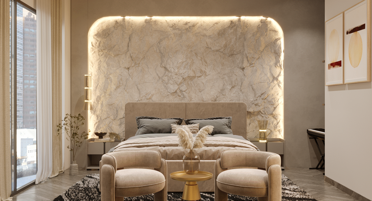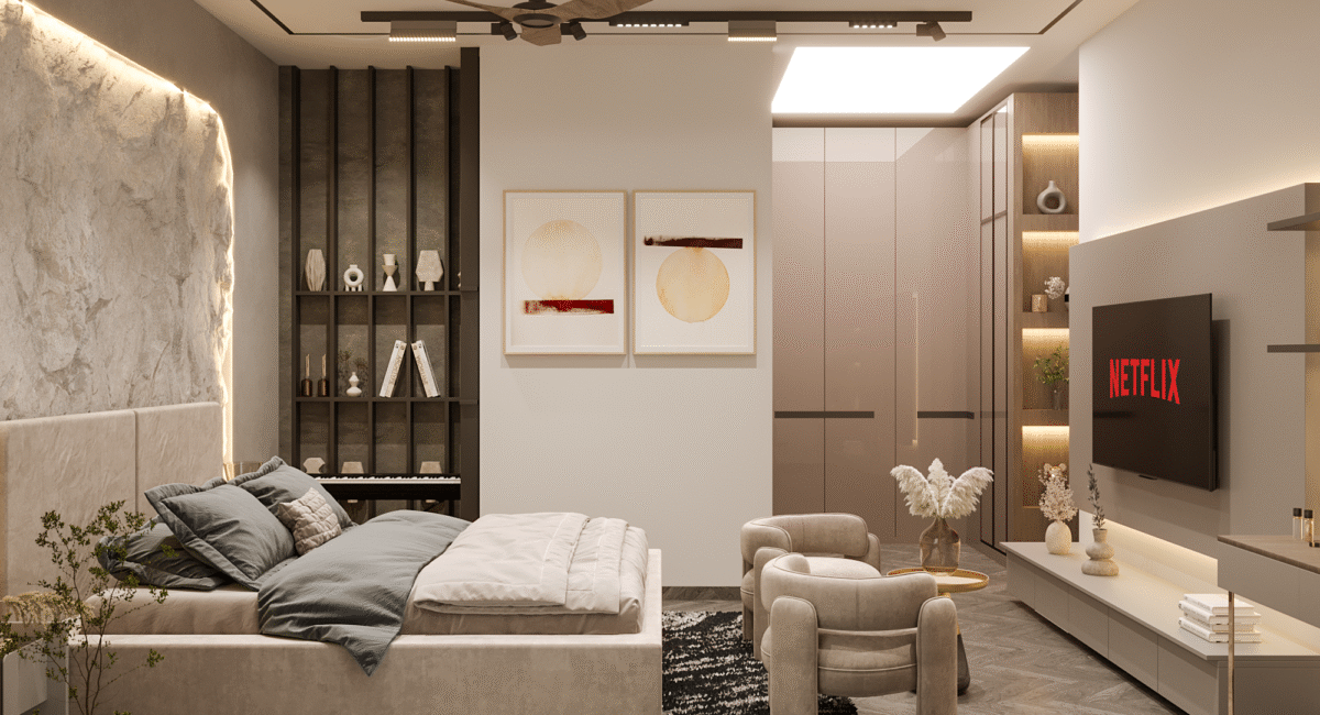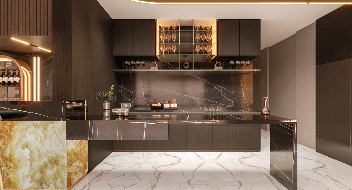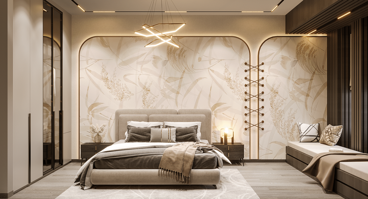 At the heart of the design is a vision of modern luxury that speaks to Dubai’s cosmopolitan lifestyle. The residence exemplifies modernity, where sleek lines, neutral palettes, and open spaces merge with rich textures, stunning finishes, and bespoke elements. The layout focuses on fluidity and openness, allowing natural light to flood the interiors and offer panoramic views of the surrounding city skyline.